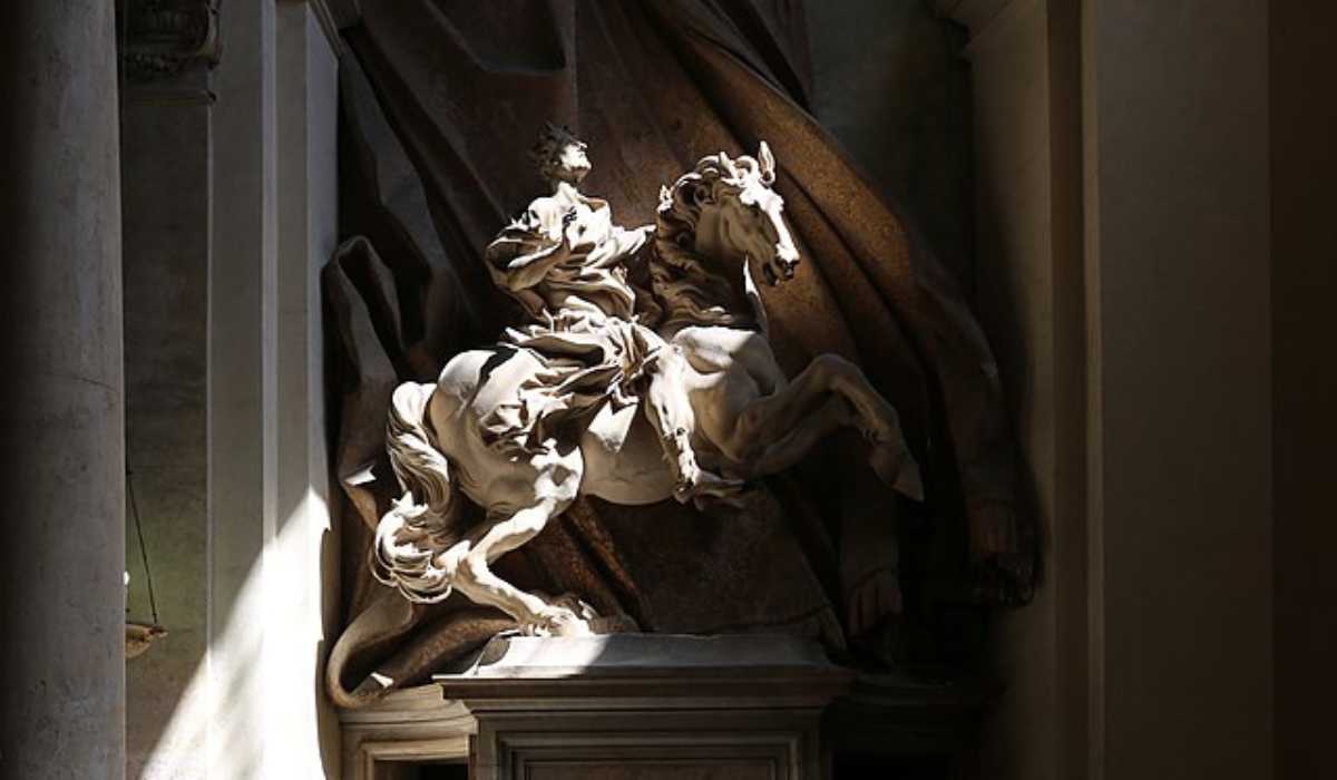 The statue, known as the Vision of Constantine, depicts Constantine receiving a vision of a cross in the sky, leading him to conclude he would be successful in battle against the then pagan emperor Maxentius.